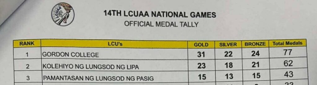 The Pamantasan ng Lungsod ng Pasig (PLP) Warriors delivered a phenomenal performance as they claimed a Top 3 overall finish at the 14th Local Colleges and Universities Athletic Association (LCUAA) National Games held from October 19 to 25, 2025 at the City College of San Jose del Monte, Bulacan.