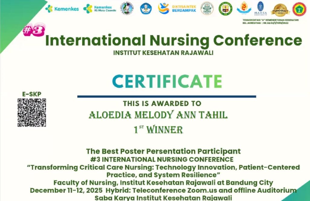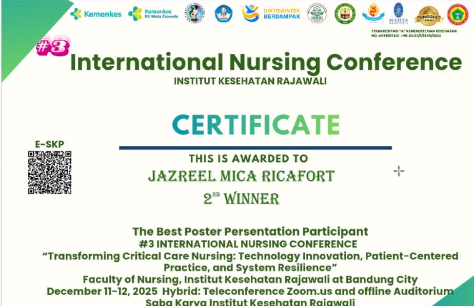 The Pamantasan ng Lungsod ng Pasig (PLP) College of Nursing proudly earned multiple accolades at the 3rd International Nursing Conference, themed “Transforming Critical Care Nursing: Technology Innovation, Patient-Centered Practice, and System Resilience,” hosted by our partner institution, Institut Kesehatan Rajawali, on December 12, 2025.