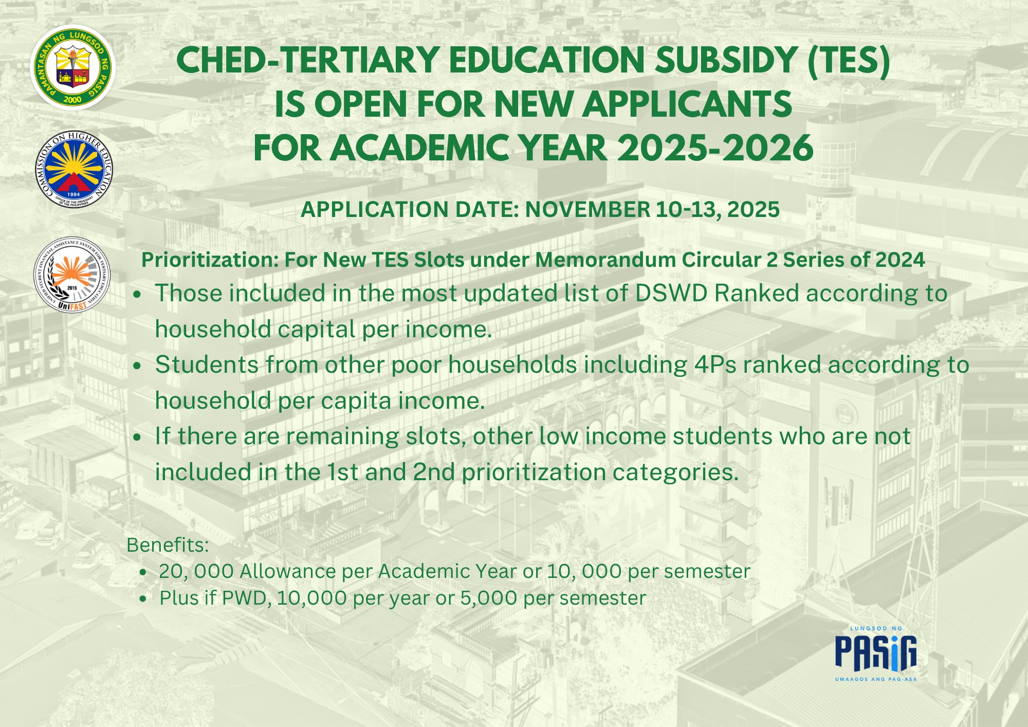 Application for the CHED–Tertiary Education Subsidy (TES) for A.Y. 2025–2026 is now OPEN!