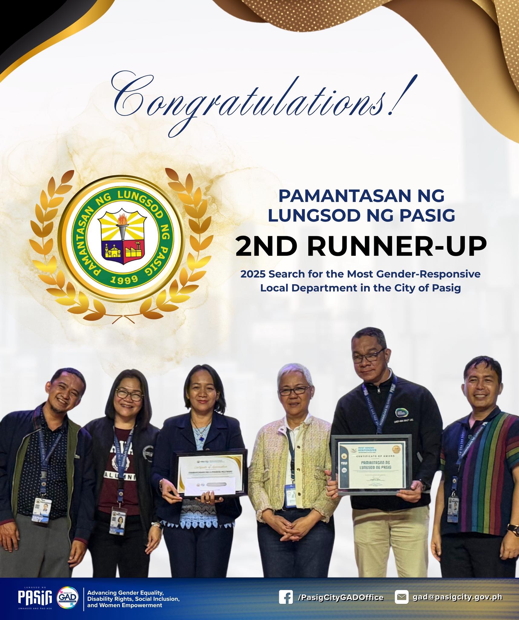 Pamantasan ng Lungsosd ng Pasig Secures 2nd Runner-Up in the 2025 Search for the Most Gender-Responsive Local Department in the City of Pasig